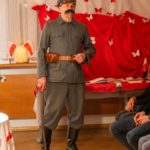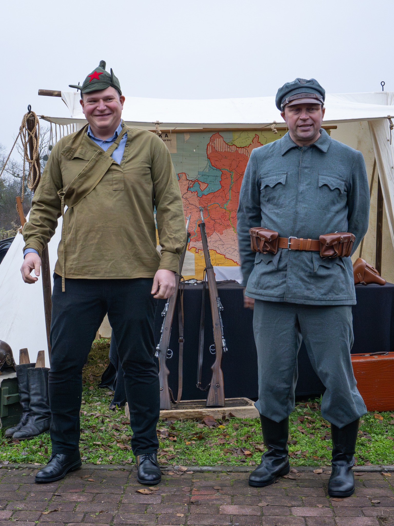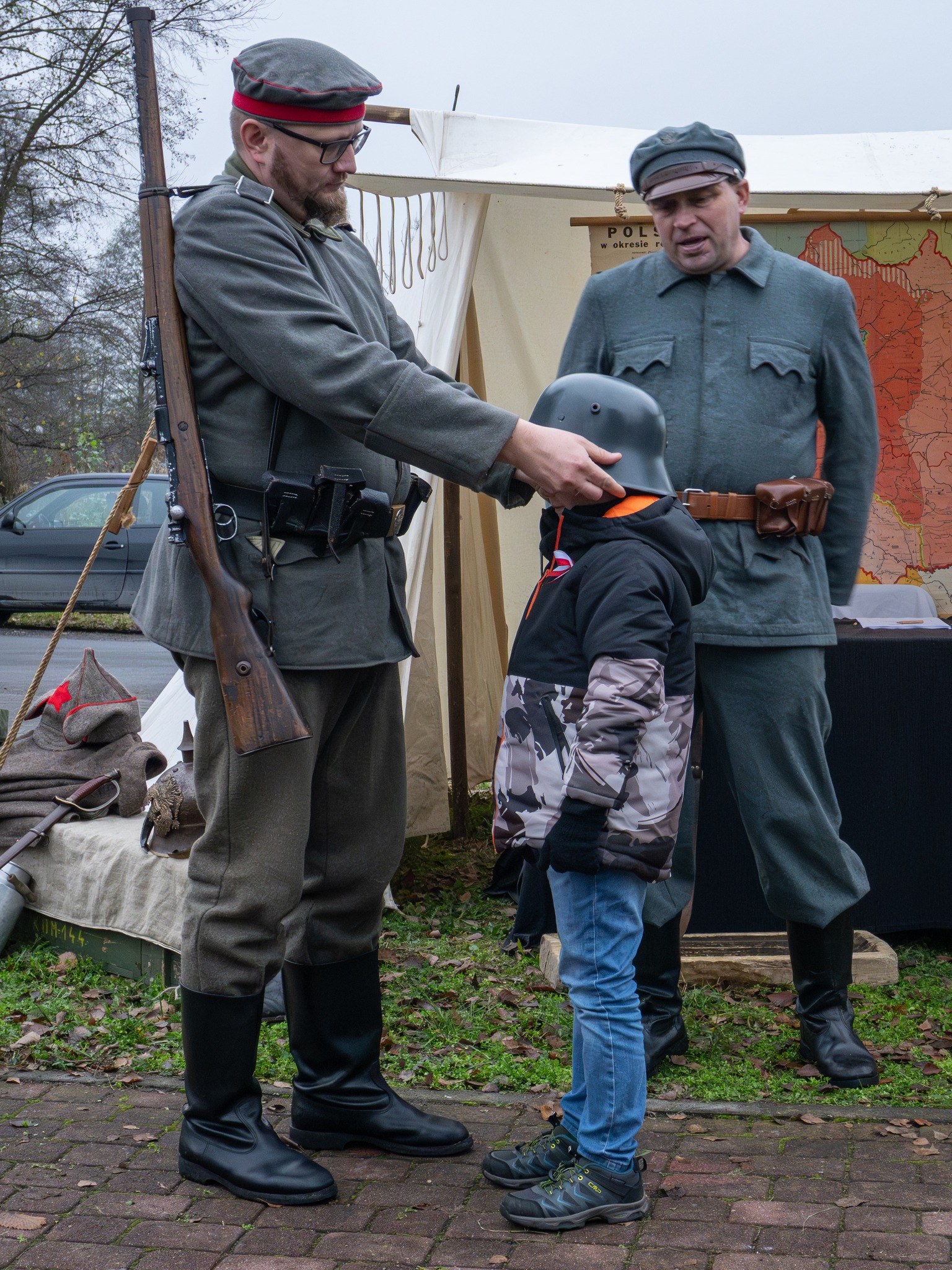 Grupa Rekonstrukcyjna przeniosła nas w dawne czasy, zapewniając przybycie Piłsudskiego na koniec obchodów, aby odśpiewał z nami hymn.